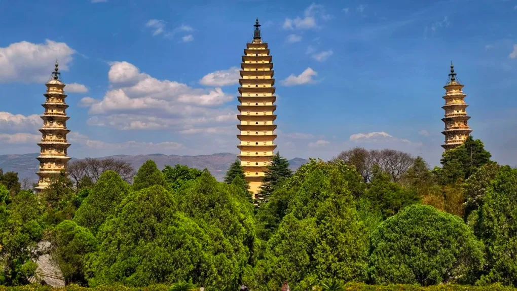 Ein Anblick, der Ruhe ausstrahlt: Die Drei Pagoden des Chongsheng-Tempels stehen seit über tausend Jahren stolz vor den Cangshan-Bergen. Sie sind steinerne Zeugen aus der Zeit der Königreiche Nanzhao und Dali und weisen auf die technologische und künstlerische Blütezeit hin, die Dali einst zum Zentrum der Region machte. Das symmetrische Zusammenspiel der Architektur mit den vorbeiziehenden Wolken macht diesen Ort zu einem zeitlosen Symbol Dalis.